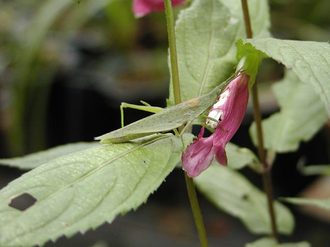 タニジャコウソウの花が少ないと思ったら 犯人はバッタでした。