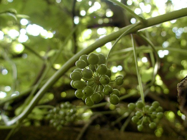 ツルをたどって行くとだんだん太くなって、実がたくさんなっていました。