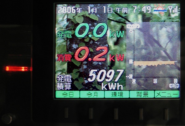晴れて発電量が使用料を上回ると、左のランプが緑色になります。